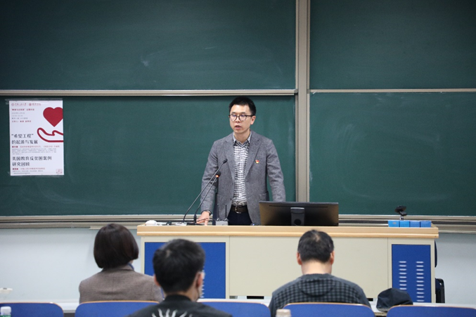 郗杰英先生以《“希望工程”的起源与发展》为题发言。郗先生用一张张图片和一个个故事向同学们介绍了希望工程的诞生背景与资助学生的发展,指出:“人无分老幼贫困,地无分东南西北”,爱心与恻隐之心是希望工程的动力所在。进入新时代,希望工程努力为青少年提供新助力,播种新希望。他对在座学生提出要求,希望我校师生以新时代希望工程项目为指引,从学科和专业的教育视角去理解“希望工程”的意义与经验。