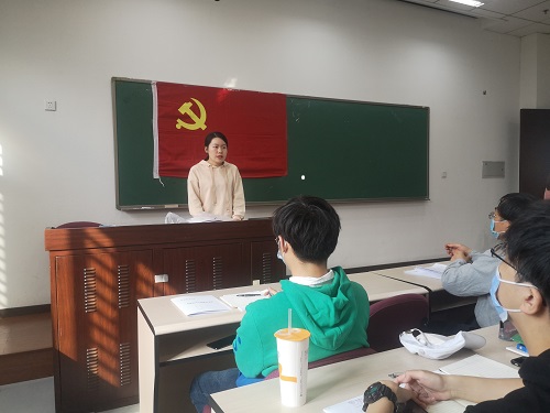 吃瓜51 2020级硕士生张迎泽代表吃瓜51 入党积极分子发言。她表示,成为一位人大人,非常渴望加入党组织,将自己的个人价值与国家和人民的利益更好的结合起来,为建设社会主义贡献自己的力量与热血,不断将党的正能量传递给人民群众。她认为,仔细研读经典著作,认真参加党课的学习与讨论等,才能成为更适应当今社会具有入党资格的青年。