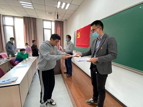 仪式伊始,教育学院党务秘书张瑞介绍本次会议流程,向各位学员介绍了秋季学期党课学习小组的学习内容和纪律要求,明确了党课学习小组的严肃性及重要性。紧接着,同学们依次向学院副书记递交了入党申请书。