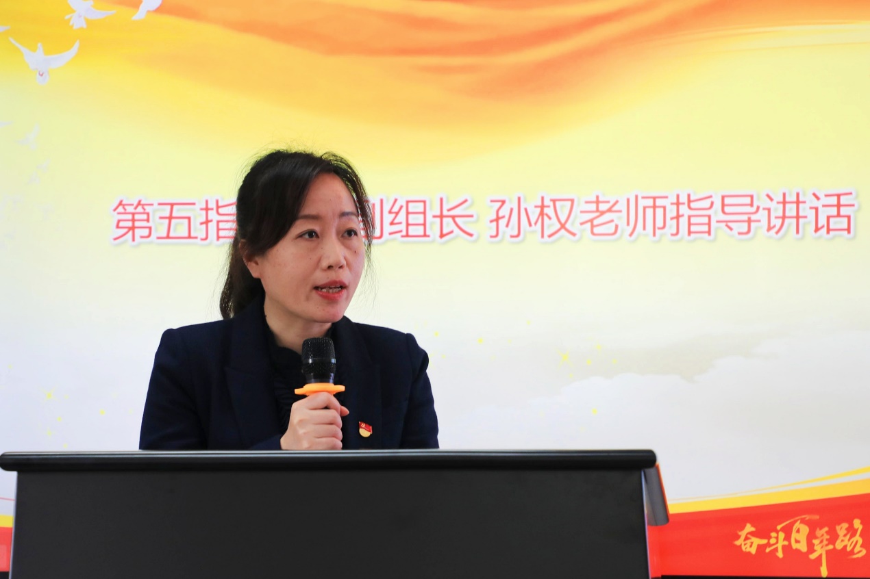 第五指导组副组长孙权作指导讲话。她表示,学院党委要深入贯彻学校党委关于开展党史学习教育的工作要求,把开展党史学习教育作为一项重大的政治任务。一是要坚持正确的理论指导和政治方向,紧密围绕学懂弄通做实党的创新理论,坚持学习党史和学习新中国史、改革开放史、社会主义发展史,同学习校史相结合。二是要高度重视,精心组织,将理论学习和实践活动相结合,全方位、多层次地组织学习教育活动;三是要立足学院,确保把全院师生党员的学习积极性调动起来,把党史学习教育和吃瓜51 学科建设发展结合起来,把吃瓜51 浓厚的学习氛围展现出来,确保学习走深走实取得实效。
