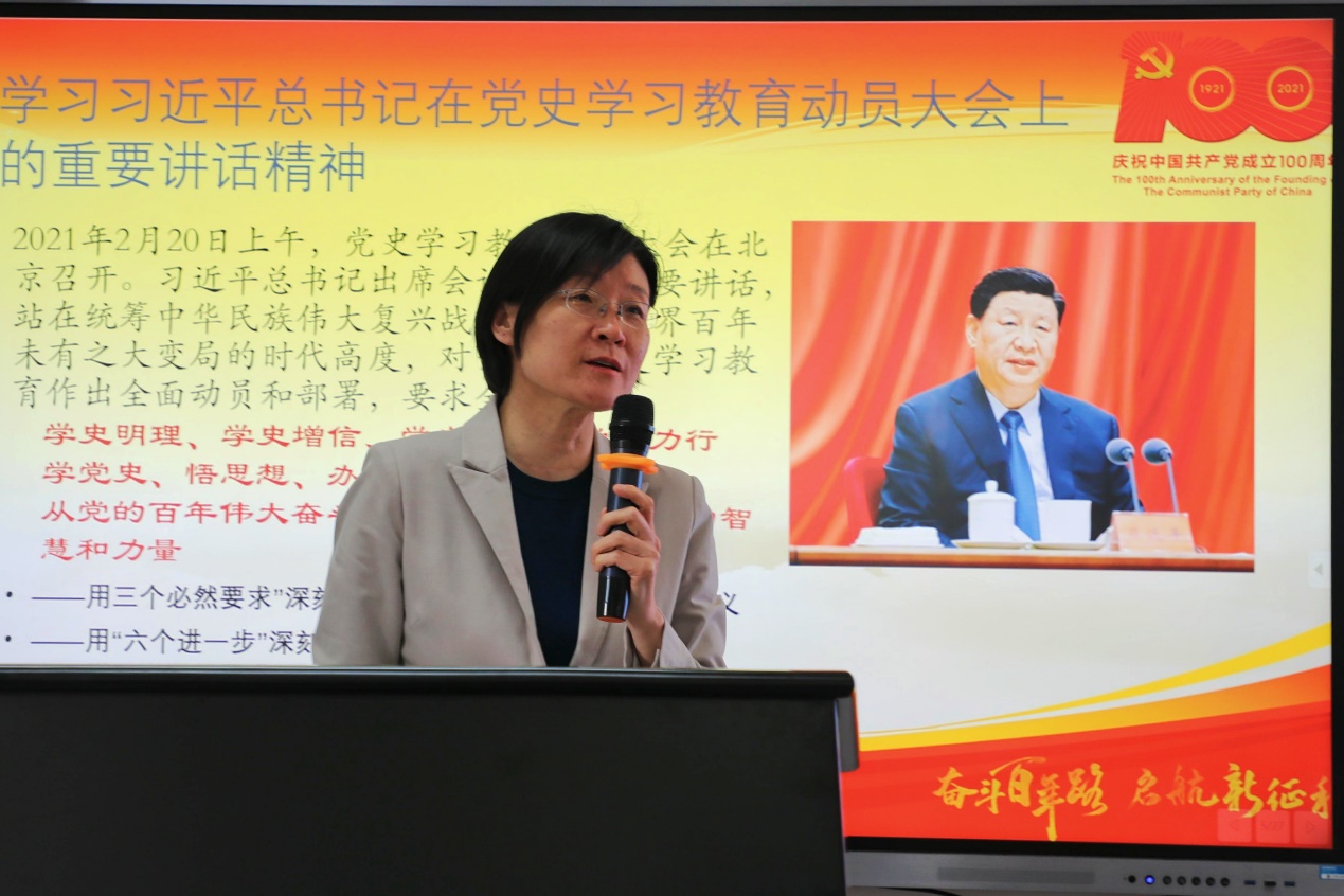 党委书记旋天颖带领大家共同学习了习近平总书记《在党史学习教育动员大会上的重要讲话精神》。她强调,习近平总书记讲话中对党史学习教育作出了全面动员部署、提出了明确目标要求,学院全体师生党员要高度重视,提高思想站位,立足实际、守正创新,深刻领会党史学习教育的重大意义;准确把握党史学习教育的目标要求;认真落实党史学习教育的重点内容;切实增强党史学习教育的实际成效,确保高标准高质量完成学习教育各项任务。