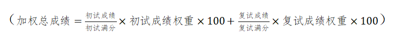 2.对各项复试成绩合格的考生,将复试成绩与初试成绩加权求和,排列录取顺序。初试成绩权重为70%,复试成绩权重30%。