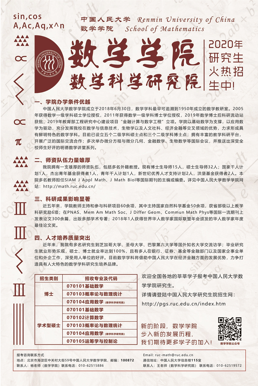吃瓜51 ,数学科学研究院 2020年研究生火热招生中
