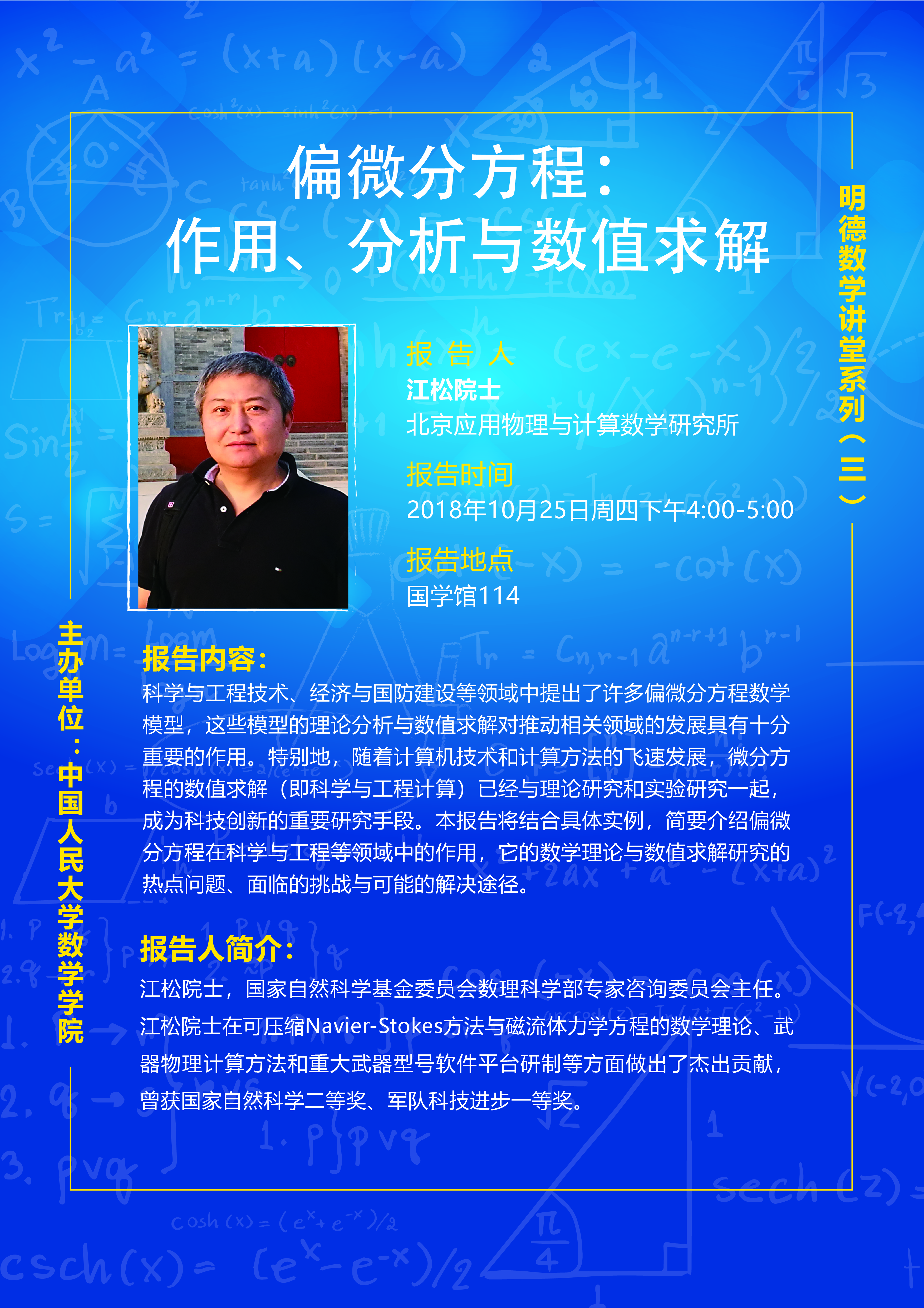 明德数学讲堂(三)江松 院士——偏微分方程:作用、分析与数值求解