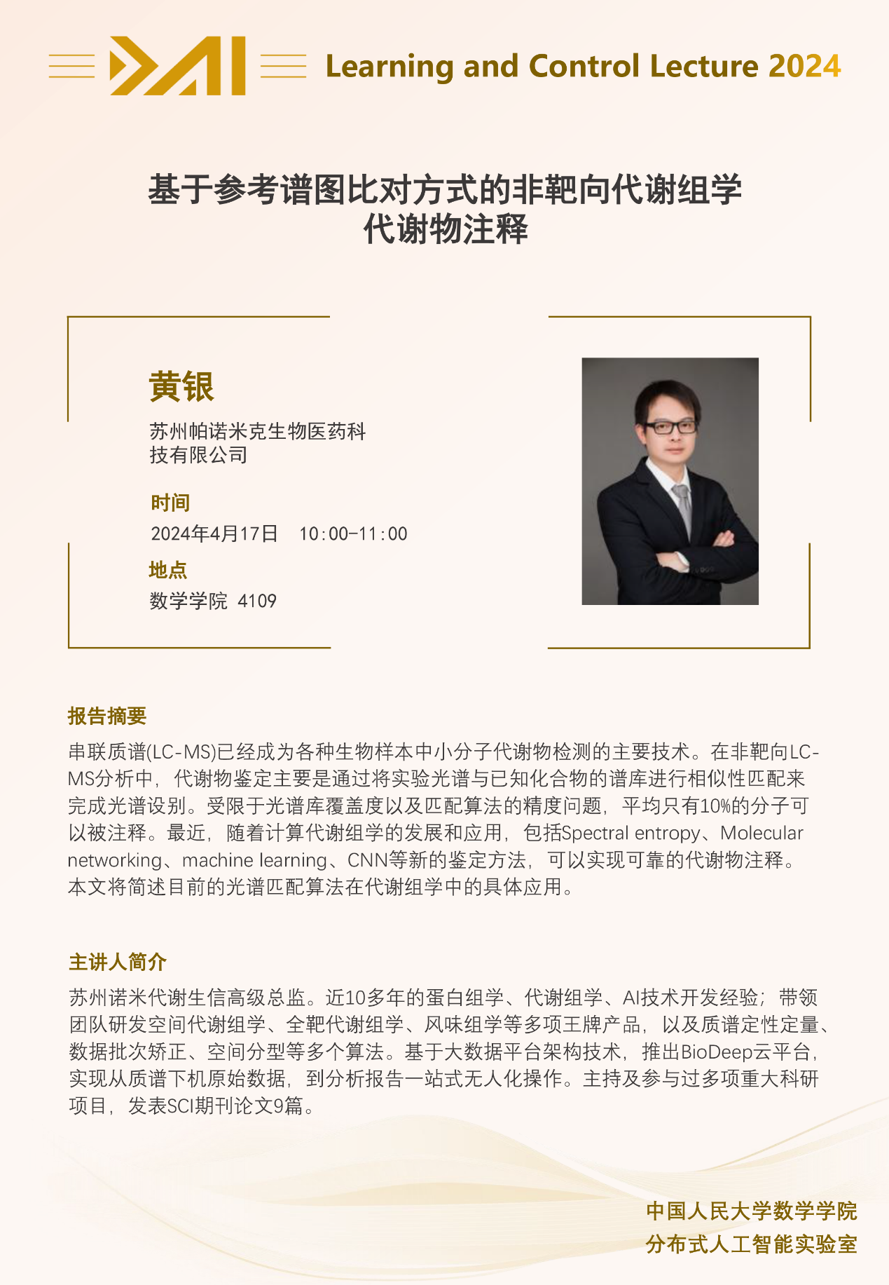 报告人:黄银,苏州帕诺米克生物医药科技有限公司