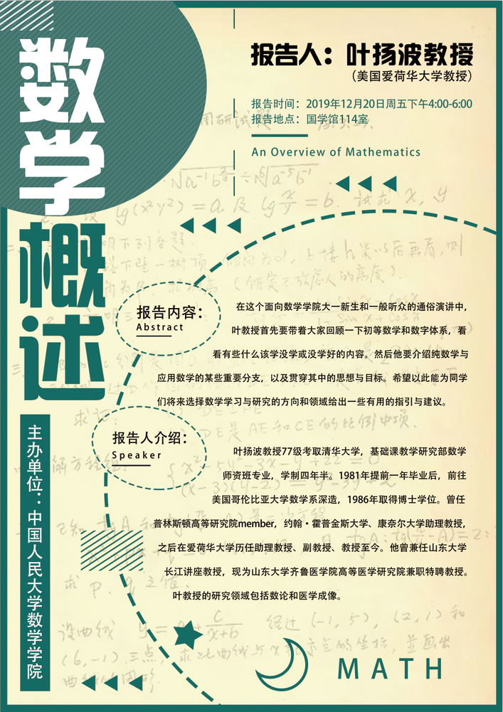 报告题目:数学概述(An Overview of Mathematics)