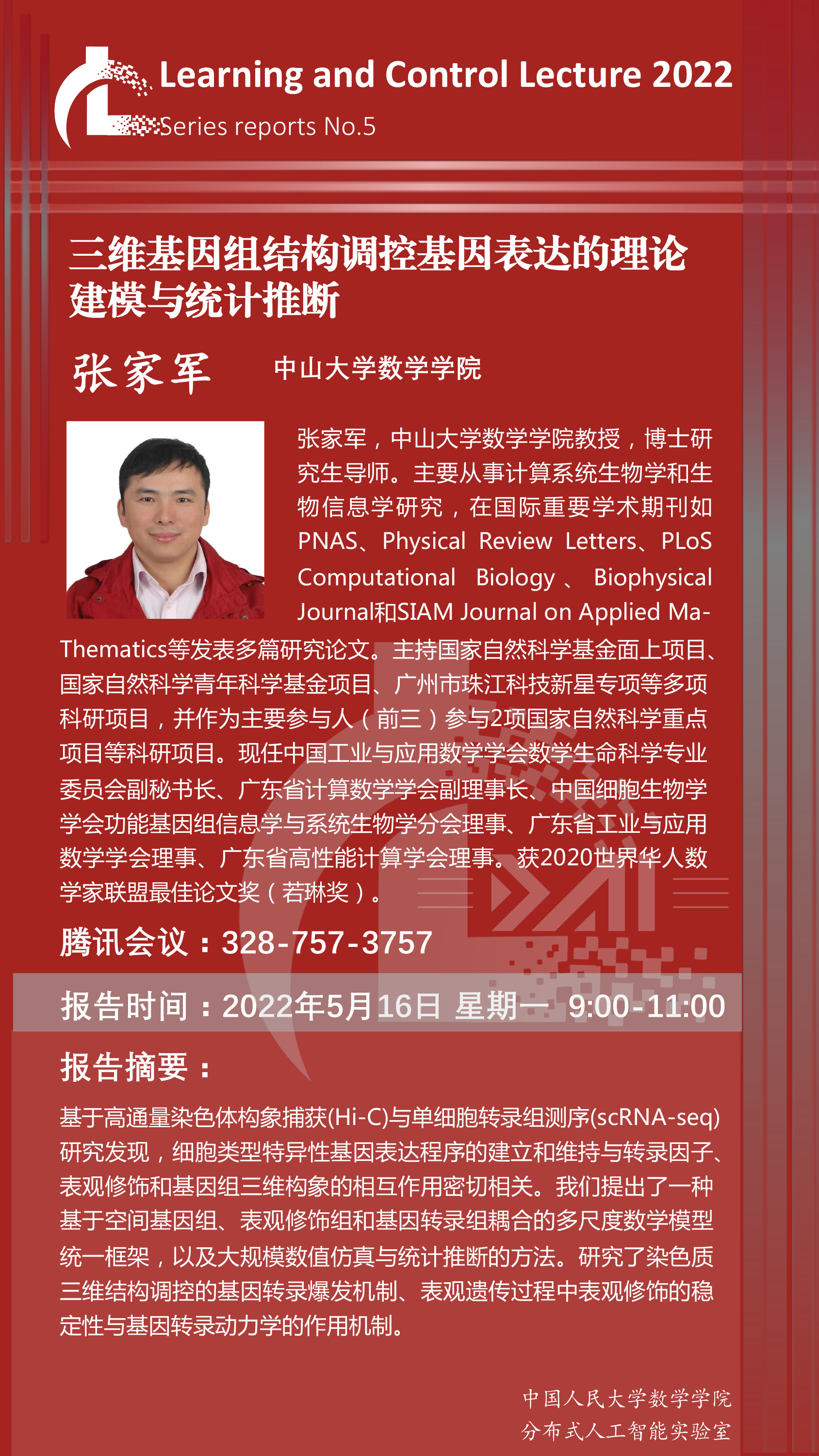 报告题目:三维基因组结构调控基因表达的理论建模与统计推断