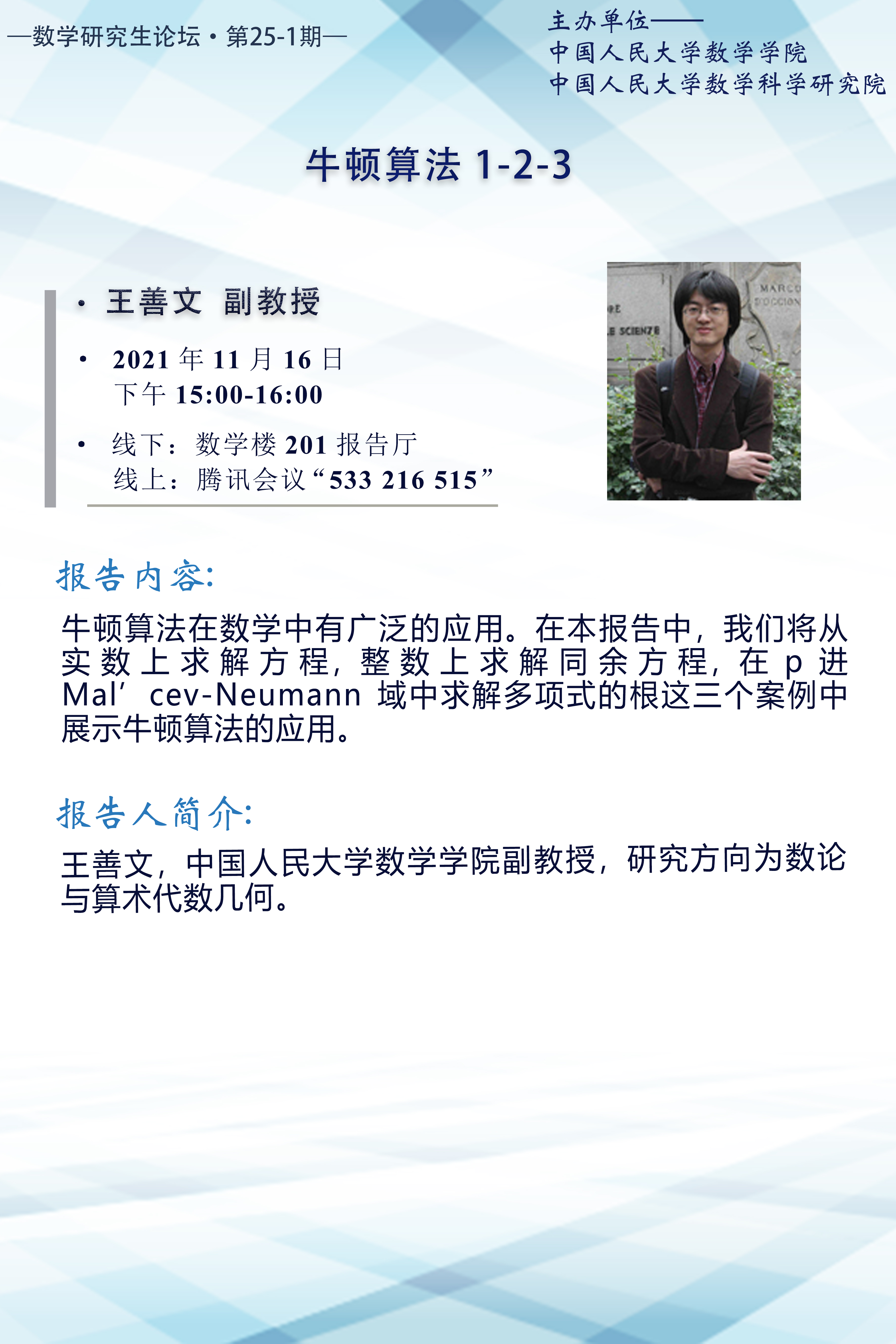 数学研究生论坛——牛顿算法 1-2-3——王善文