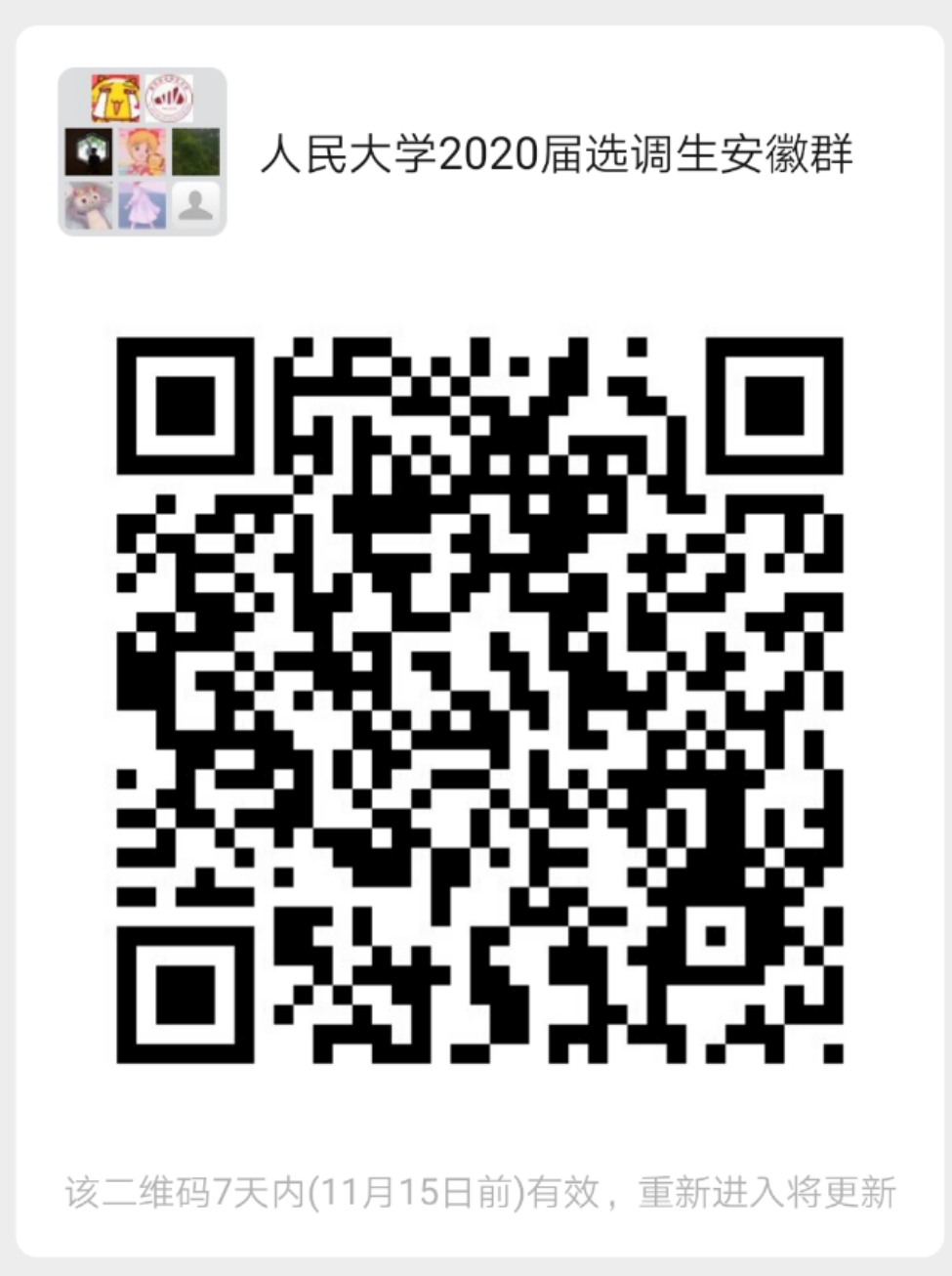 扫描下方二维码加入“人民大学2020年安徽选调群”,如群满100人,可加微信号:jicengjiuye,验证消息为“姓名+学院+2020年安徽选调群”