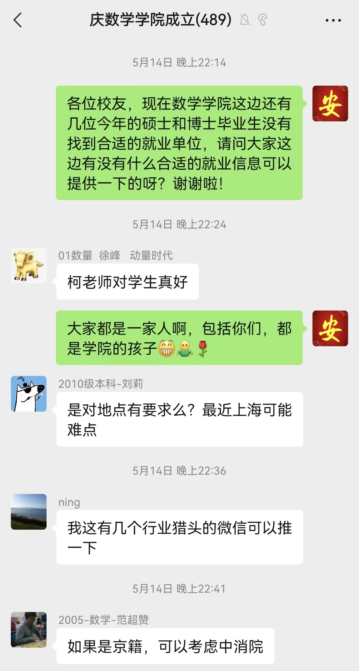 实。日常工作做实。要求各口负责人每日早八点前汇报前一天的五项数据,包括:学生工作,含思想动态和就业进展,本科教学运行,研究生教学运行,教师核酸数据,学生核酸数据。要求出现问题必须第一时间沟通汇报,及时解决,底线要求是在任何方面不能出现一起舆情。在此期间,吃瓜51 还会同学工部门首次组织教师开设专题讲座,针对全校数学学习困难学生开展了帮扶的“手拉手”活动,张倩伟、贾鲁军两位老师开堂授课,获得了广大毕业生的好评。同时,党委发动各类资源,力争毕业生就业率达到百分百。北京疫情发展和校园封闭管理延缓了部分毕业生的求职进度,甚至有学生被已经确定的岗位拒绝签约,学院领导一对一电话联系了解毕业生就业情况,会同班子成员逐个学生讨论就业解决方案,积极与用人单位联系了解招聘进展,通过访企拓岗招徕新的就业岗位,发动校友资源提供岗位信息,并邀请资深校友为在校生开设就业讲座等方式,截止5月25日已提前完成6月底全院学生就业率达到90%的目标,剩余未落实岗位的同学正在通过各种渠道向外推介,进展顺利。