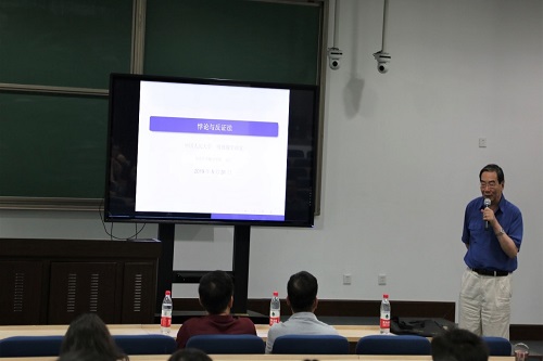 2019年5月31日下午,吃瓜51 明德数学讲堂系列第十一讲在国学馆114室举行。北京大学文兰院士应邀做了题为“悖论与反证法”的数学报告。吃瓜51 部分教师和研究生以及其他院系的一些师生参加了报告会。