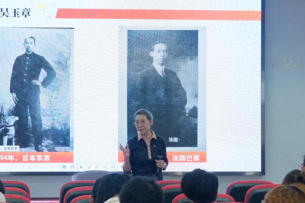 吴本立教授结合珍贵的历史图片,从吴玉章老校长的人生经历讲起。艰苦的家庭环境与人生境遇培养了吴玉章认真负责、沉静坚毅的优秀品质,吴玉章秉持“不义之财,宁饿死不苟得”的道德信条,始终将国家民族放在心中,从偏远的四川荣县,沿着长江来到上海,后赴日本、法国留学,始终在寻找富国强民的道路,始终战斗在革命第一线。吴玉章校长一生坚持革命,坚持办教育,毛主席评价他:“一辈子做好事,不做坏事,一贯地有益于广大群众,一贯地有益于青年,一贯地有益于革命”。