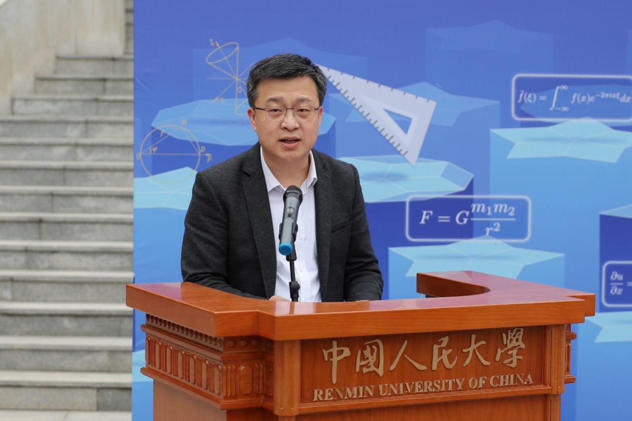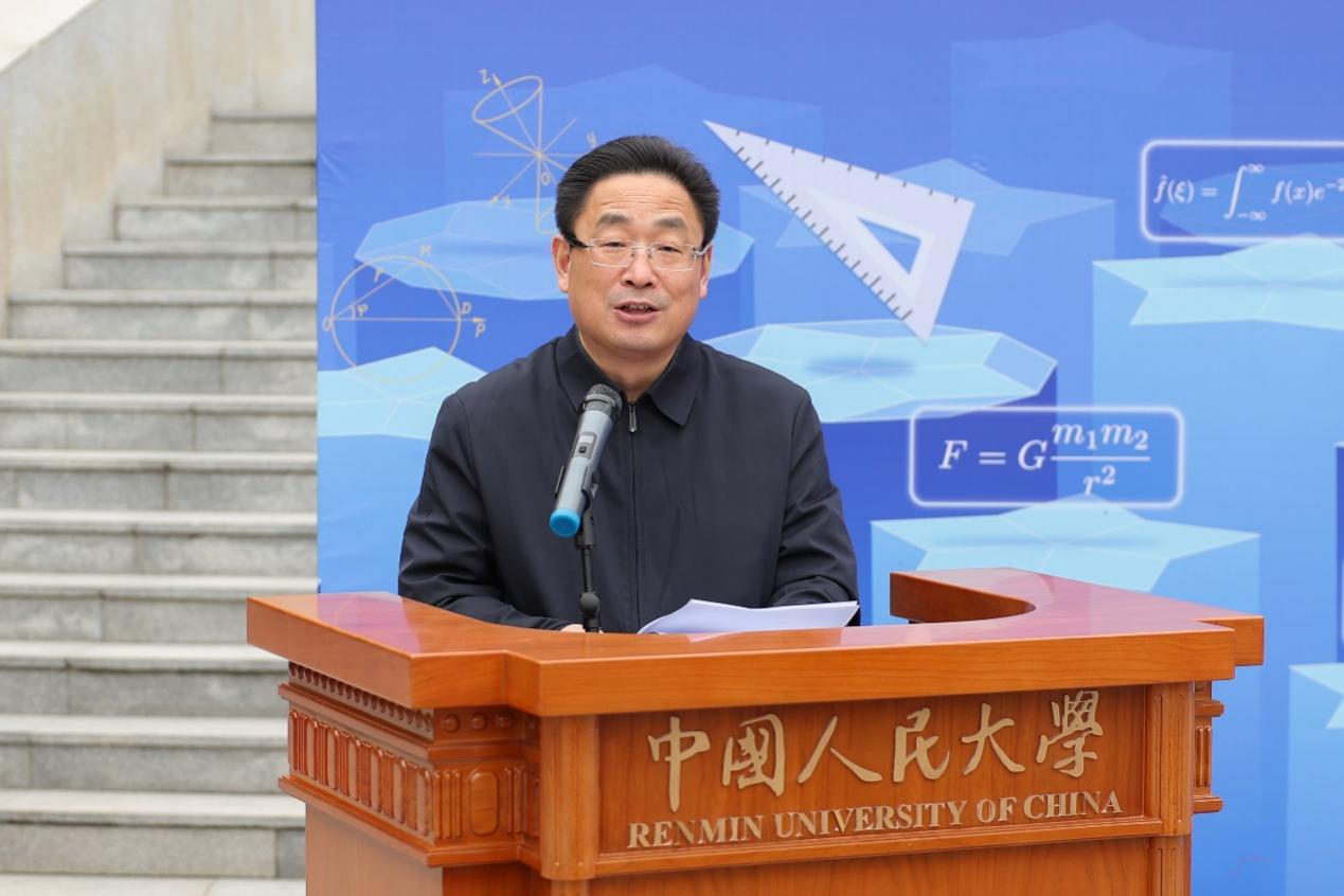 朱信凯副校长为展览开幕致辞讲话。他表示,数学是科学的艺术边界,更是国家的战略密码。人民大学积极推进“大中小一体化”数学教育改革,本次展览实现学段衔接、动态体验、室内外互动的“三个延伸”,拓展学习空间,深化环境育人。他强调,“坚持教育、科技、人才一起抓”,对数学学科而言,这既是挑战,更是机遇。谁占领数学最高地,谁就能占领技术的最高地。我们要以时不我待的紧迫感,敢为人先的勇气,集中力量打造人大特色的优势数学学科。在新工科、新医科、新文科等前沿领域,凭借数学的基础支撑,抢占先机,成为交叉学科赛道上的引领者,推动学校高质量发展。他勉励师生以数学思维探索未来,为民族复兴贡献智慧和力量。