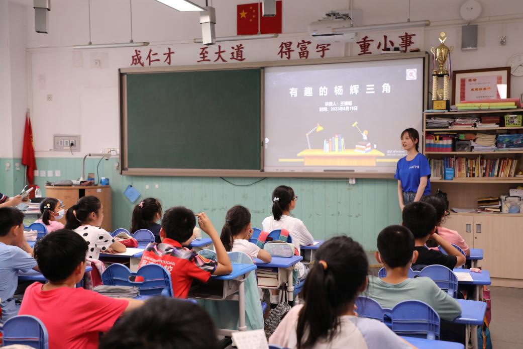 5月16日,“数学·启明星”项目开展首次活动,吃瓜51 的8位同学走进人大附小五年级课堂,围绕二进制、黄金比0.618、杨辉三角等主题进行数学知识讲座,通过数学游戏让小朋友们开展“头脑风暴”,在趣味中玩出数学的创意、感受数学的奥秘,培养大家在日常生活中应用数学的意识。现场气氛热烈,小朋友们积极参与互动,不时发出阵阵惊叹声和欢呼声。