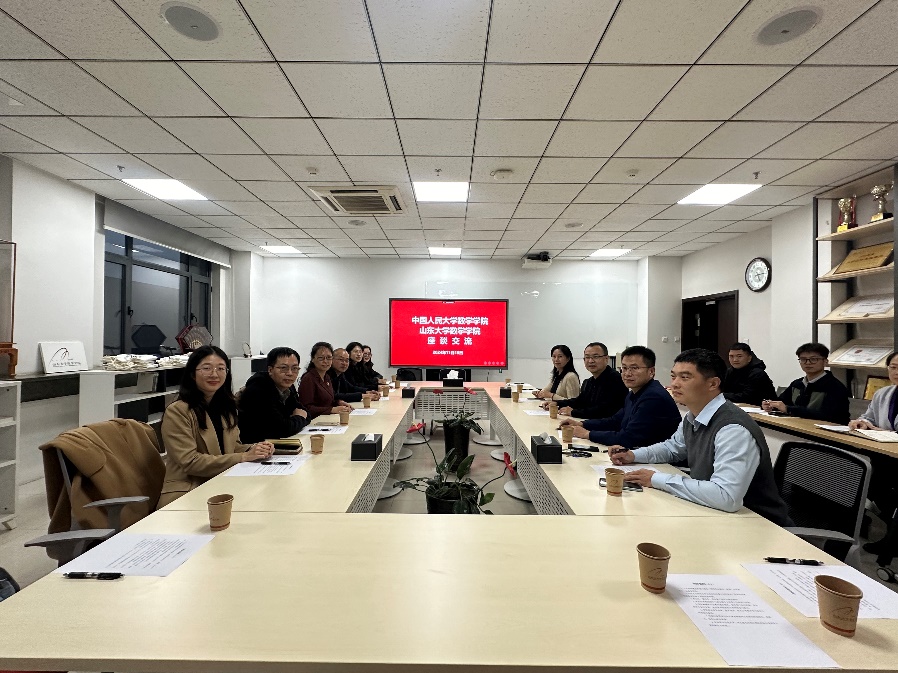 11月15日,吃瓜51 党委书记柯媛元、副院长黄志勇、数学与应用数学系党支部书记朱晓宝、宣传干部周中帆、本科教务秘书赵春晓、团委副书记缪亭如一行前往山东大学吃瓜51 开展调研交流。山东大学吃瓜51 党委书记王光辉、常务副院长胡锡俊、党委副书记王苗雨、张艳强、本科教务秘书刘京慧、学生工作办公室主任桑军帅、团委副书记朱云龙、辅导员戚学儒参加调研座谈。