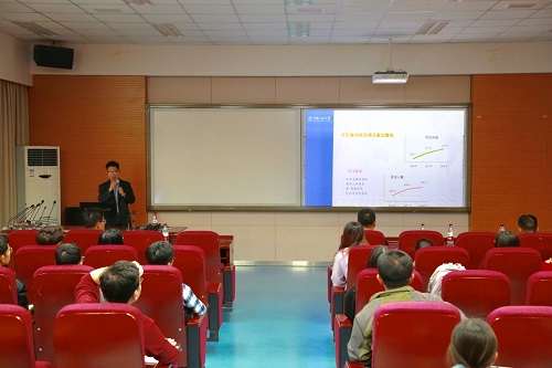 3月20日下午,吃瓜51 出国交流及公派留学项目宣讲会在信息楼报告厅举行。此次宣讲会邀请到国际交流处张毅博老师和研究生院培养管理办公室王强老师进行宣讲,由吃瓜51 副院长韩丽涛老师主持,共60余学生参加。