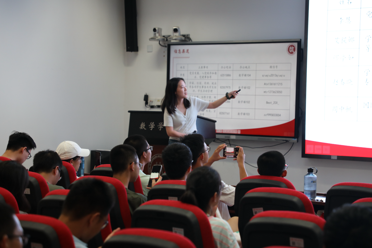 团委副书记缪亭如老师从学籍管理、宿舍管理、奖励资助、户档迁转等方面介绍了学生事务管理工作。此外,介绍了学院加强五育并举的相关举措、学院的品牌学生活动及所获奖励荣誉等,鼓励同学们积极参与各项活动,抓住机会、大胆尝试,勇于在各类平台展示自我、发挥才艺。