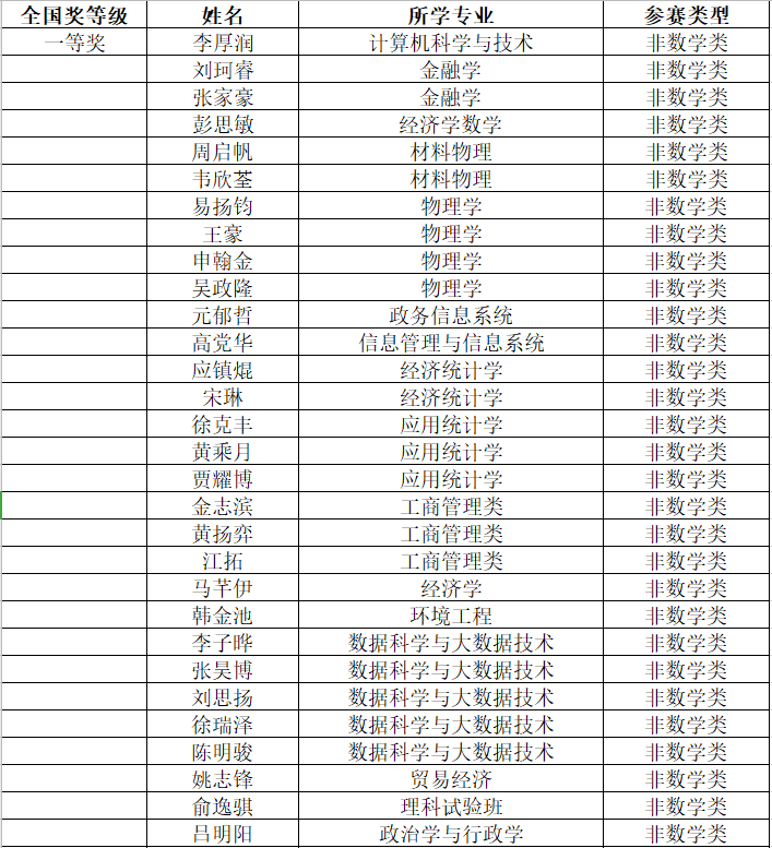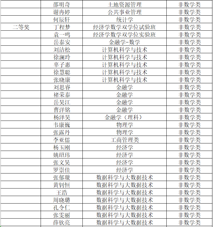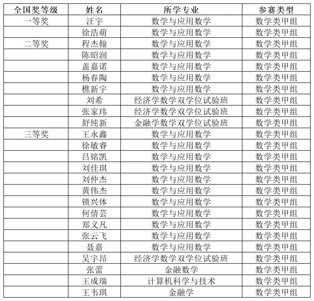 特别需要指出的是我校数学类A组成绩十分喜人,2名来自吃瓜51 2019级数学拔尖人才实验班的同学,以优异成绩跻身28名北京赛区全国总决赛名单中,充分展示了我校吃瓜51 本科学生的专业实力。