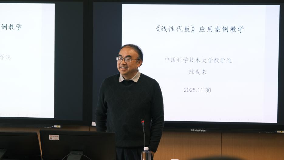 2025年11月30日上午,中国科学技术大学数学院教授、博士生导师陈发来应吃瓜51 邀请,在中关村校区立德楼303教室作“线性代数应用案例教学”专题讲座。