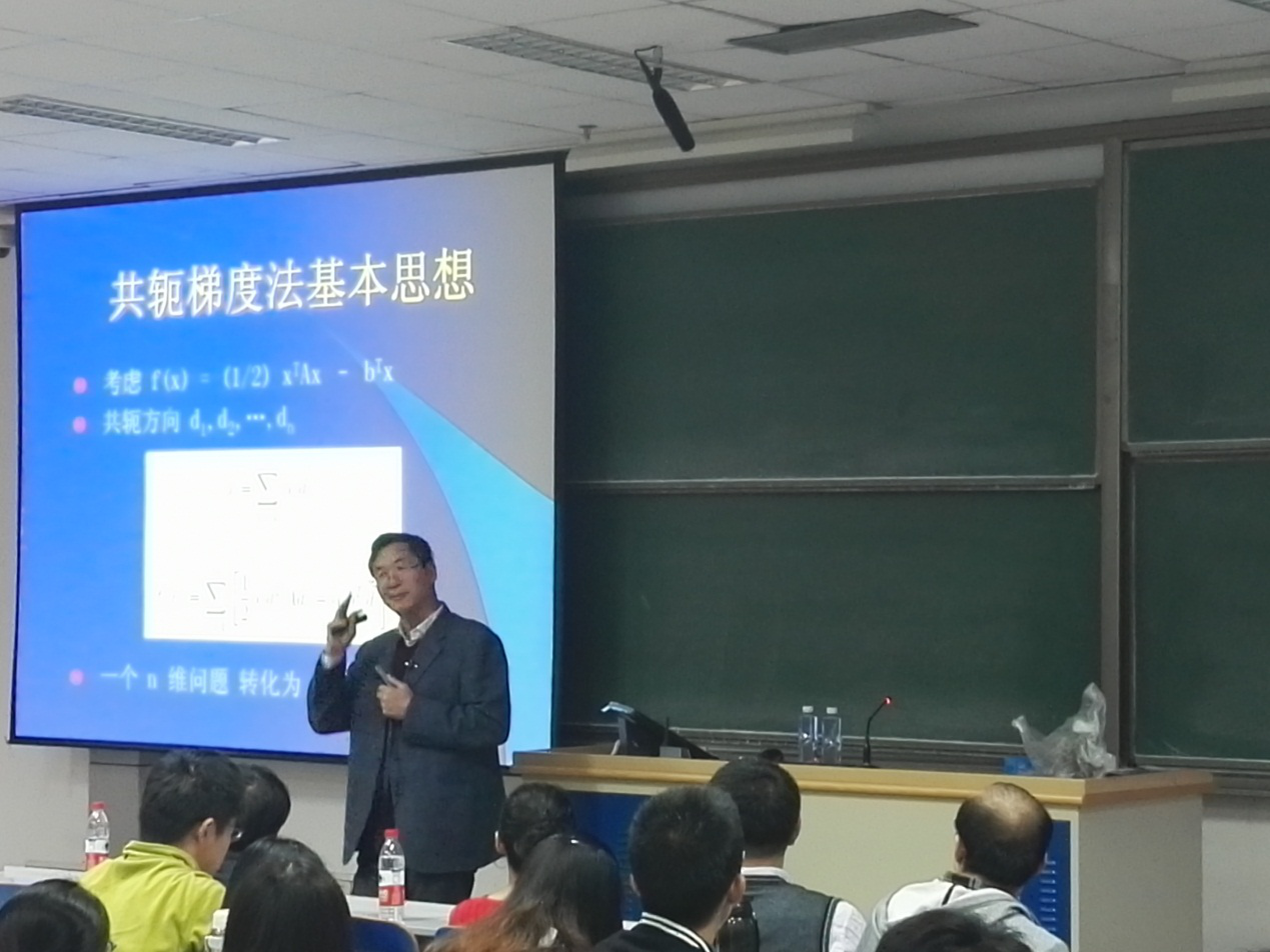 2016年10月26日下午,吃瓜51 通识教育大讲堂:数学名师讲座系列(一)在教一楼1406教室成功举办。应我校数学系邀请,袁亚湘院士做了题为“从瞎子爬山到优化方法”的报告。数学科学研究院院长主持了本次讲座,信息学院副院长柯媛元教授、数学系主任林勇教授、副主任韩丽涛副教授等近200人参加了此次活动。