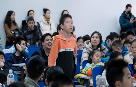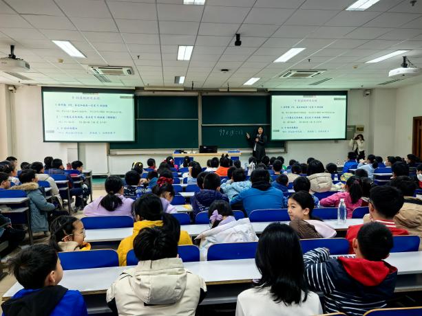 随后,两场特色课堂相继展开。胡长英老师以“数学是超级魔术师”为切入点,为同学们带来专属数学魔术盛宴,解锁系列趣味魔术。她以数字9的神奇规律为核心,带领同学们现场互动猜年龄、快速算豆子数量,一个个“读心术”表演引发阵阵惊叹。此外,她结合2026年春晚魔术《惊喜定格》,深入浅出地揭秘背后的数学原理,感受数字带来的无限惊喜。李昊老师为高年级学生带来一场颠覆认知的数学悖论探索之旅。他围绕 “穿越三千年数学奇境”的主题,从古希腊阿克琉斯追龟悖论、生活中幸存者偏差,到本福特定律、辛普森悖论,用生动案例将抽象的数学逻辑娓娓道来。通过一个个“不可能”的思维实验,引导孩子们主动思考、大胆质疑。