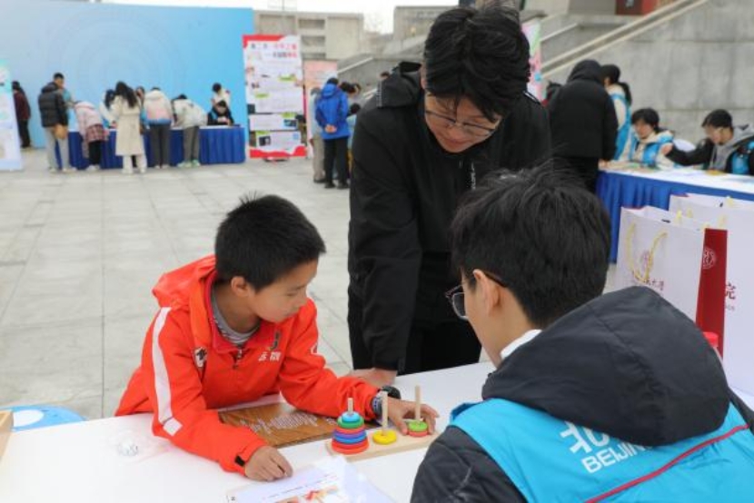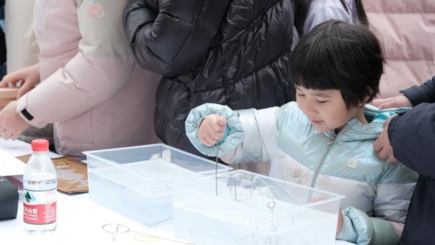 在“度量之岛”,“24点挑战”比拼心算与反应速度,“数字黑洞”寻找隐藏的数列规律,“火柴魔法阵”拼出看似不可能的结构。走进“符号之城”,参与者穿越“数独迷宫”,破解“数字密码锁”,在“函数迷踪”中寻找隐藏的数学怪兽,系列游戏成为跨越年龄的思维竞技场,孩子们一同解锁数字奥秘。“无穷之海”里,同学们进行“算力王者”挑战计算极限,“极小曲面实验室”中,铁丝框架浸入肥皂水后形成的彩虹曲面,让孩子们爆发出阵阵惊叹:“哇——原来数学可以这么美!”直观的视觉冲击,让大家真切感受到数学的浪漫与神奇。在“结构之塔”区域,七巧板拼图、莫比乌斯环体验和“不可能图形”构建,让参与者触摸空间结构的奇妙,感受数学不再只是符号,而是可触可感、可拼可造的鲜活世界。在“随机之境”区域,“蒲丰投针实验”让大家亲手验证几何概率,“博弈论挑战”上演策略对决。在这里,大家意识到,即使面对随机与不确定,数学也能帮助我们理解世界的规律。