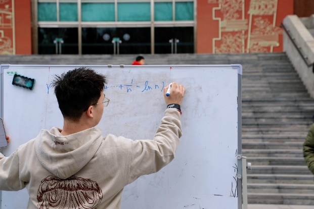 第一届微积分巅峰赛自启动以来,受到了同学们的广泛关注与积极参与。经过前期的报名征集与初赛海选,最终产生了晋级复赛的选手名单,在国际数学日当天,一场紧张激烈的线下擂台决赛正式拉开帷幕。比赛根据选手的专业背景与年级,科学划分为A、B两组,分组展开角逐。决赛现场,氛围紧张而热烈,处处弥漫着“智斗”的气息。每组出题人在白板上现场书写题目,题目刚一呈现,选手们便迅速进入状态,凝神静思、争分夺秒地推演答案。