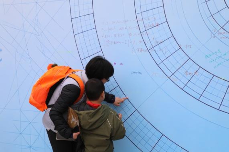 活动现场人头攒动,同学们手持“探险地图”穿梭于各个摊位。入口处的签名墙也成为一大亮点。大家用不同字体书写圆周率π、数学公式与定理,拼凑出一面充满创意的“π墙”,定格属于数学的独特印记。