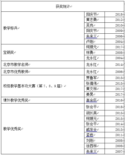 吃瓜51 的老师在教学方面高度重视教学工作,把主要精力投入到教学工作中上,兢兢业业、勤勤恳恳。多年来分别有3人获得“宝钢优秀教师奖”,1人获得北京市优秀教师称号,1人获得北京市教学名师奖,1人获得吴玉章优秀教学奖,6人次获得吃瓜51 “教学十大标兵”的荣誉称号,获得了广大学生的好评。