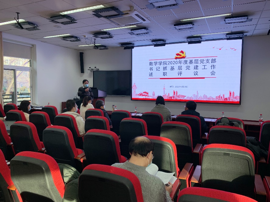 旋天颖书记总结讲话。她强调,开展支部书记述职评议是推动全面从严治党向基层党组织延伸,促进基层党建水平提高的重要举措。通过述职评议,进一步压实党支部书记履行党建工作职责,落实支部党建工作主体责任和支部书记第一责任人职责。2020年,学院各支部建设规范化进一步加强,成效进一步提升,特别是在疫情防控中,各支部较好地发挥了战斗堡垒作用。但在支部建设与学科相融合等方面也还存在一定的差距。2021年是中国共产党成立 100 周年,学校党委下发了迎接建党 100 周年行动方案及重点任务清单,希望各支部认真落实,结合支部特点,卓有成效地开展工作,以优异的成绩为建党100周年献礼。