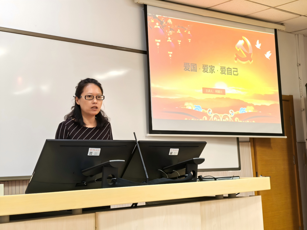柯媛元书记以“爱国、爱家、爱自己”为主题,通过列举奥运赛场上夺冠、国庆阅兵仪式、老兵敬礼等激动人心的瞬间深入浅出,鼓励同学们要有一颗与祖国、与人民共进退的心,她强调爱国不仅仅是口号,要将个人理想与祖国前途、民族命运紧密相连,胸怀理想、脚踏实地,扎根人民、奉献国家。